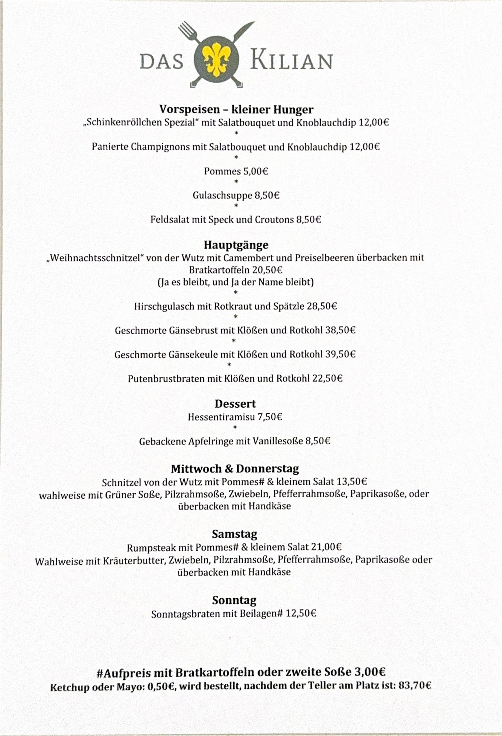 Zum aufrufen der Speisekarten klicken Sie auf einen der nachfolgenden Links: